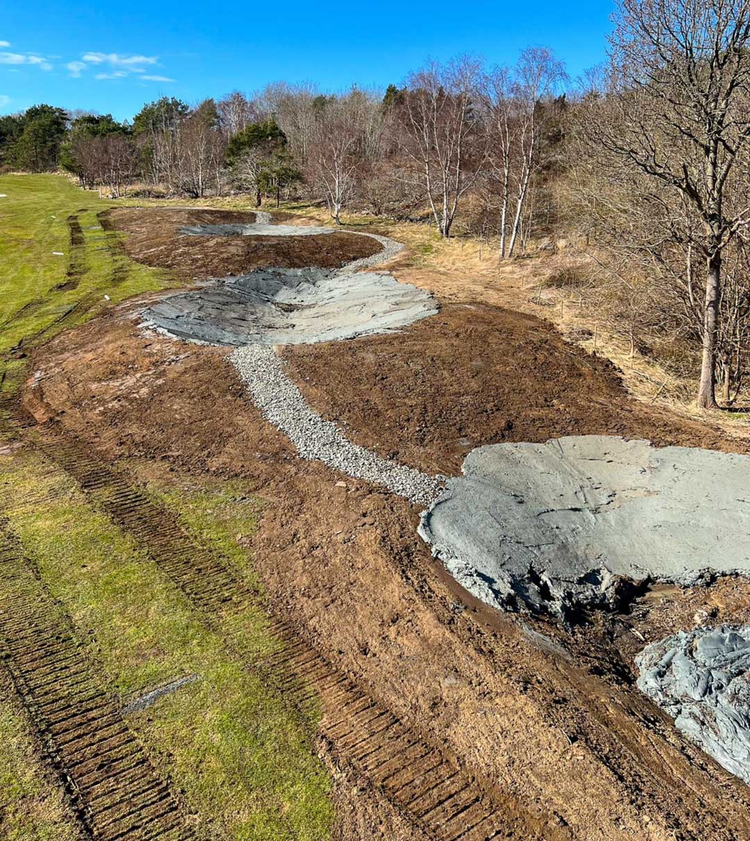 Gräset rullas ut på hål 9 och 11 och färdigställer därmed fairway på de ytor där man bland annat har lagt ner ny dränering.